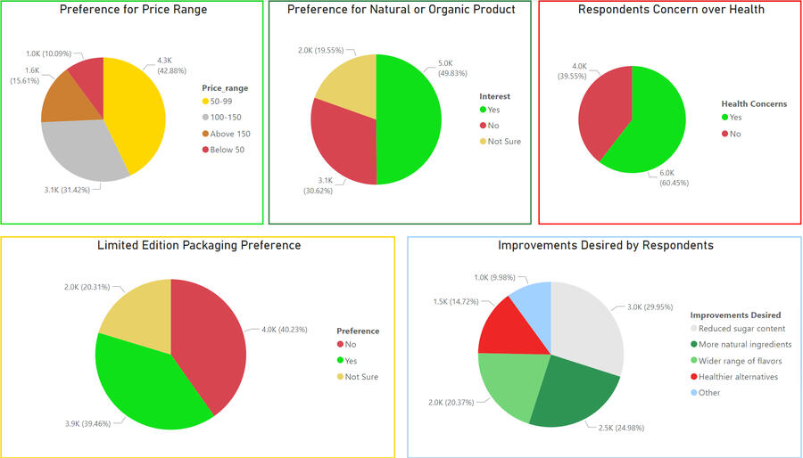 5) Formatting each section of the dashboards to clearly represent survey responses.Here are some key takeaways: